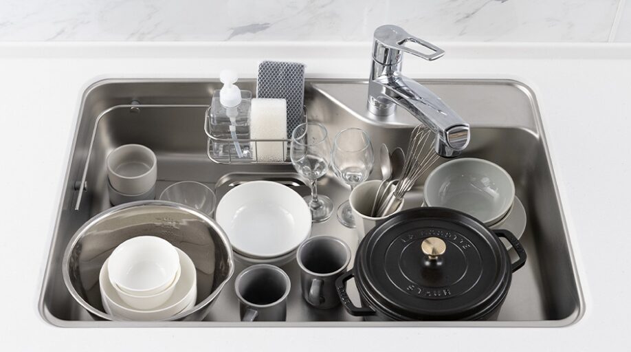 → フラットに近い構造なので、3層シンクより掃除は簡単です。